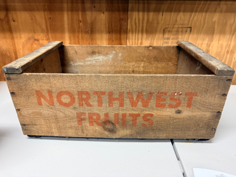 Lot # 173 - Northwest Fruits Crate - Apple Peeler - Flour/Sugar Tins