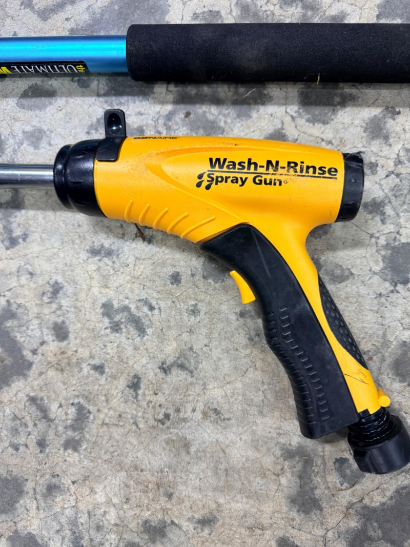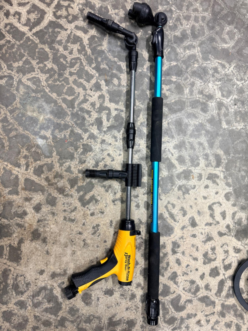 4 Gallon Backpack Sprayer & (2) Hose Sprayer Attachments Greenwood backpack sprayer with front lever pressure pump. Ultimate water blaster hose attachement Wash and Rinse spray gun hose attachment