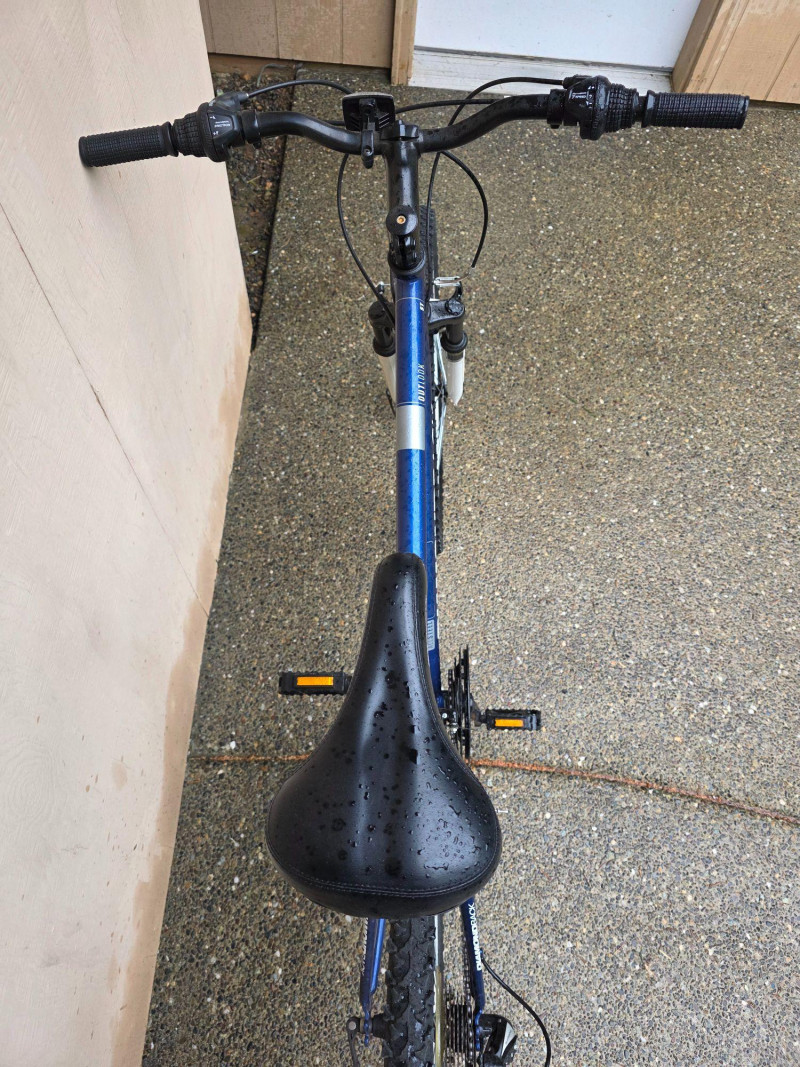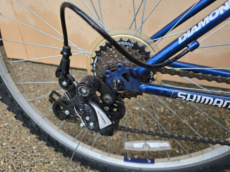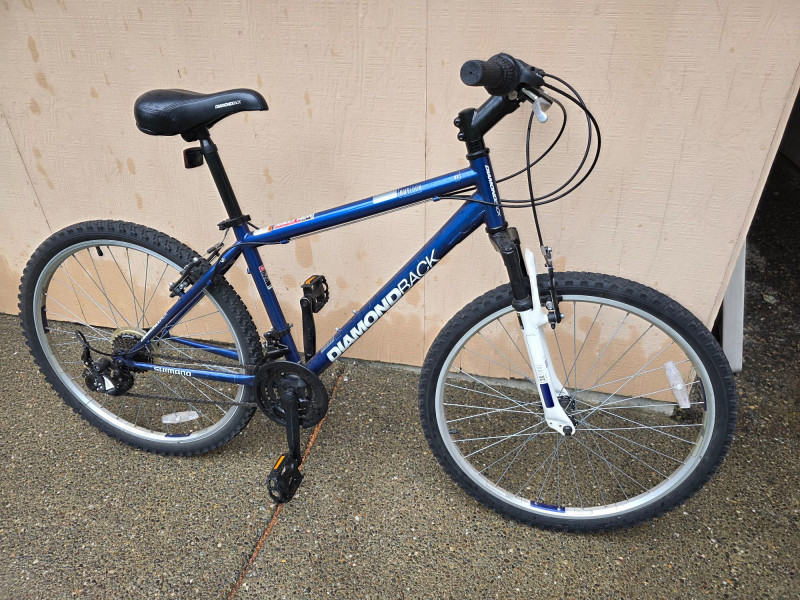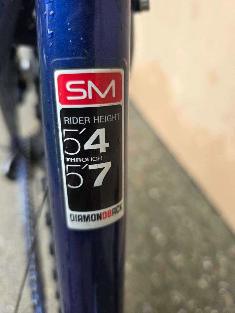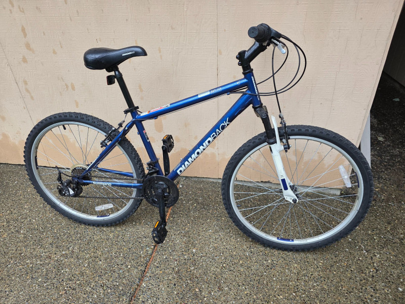 Diamondback Outlook ST 16" Mountain Bike Size "SMALL" for riders 5'4" - 5'7" tall Versatile hardtail mountain bike designed for recreational off-road and path riding This model features a distinctive blue steel frame paired with a Trail XC white suspension fork 21-speed Shimano gearing Designed with MX269R 26" alloy wheels with multi-surface tires Bike hasn't been ridden for some time, but was hung inside a garage and will most likely require some basic bike maintenance Untested!