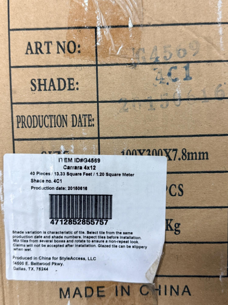 (71) Carrara 4”x12” wall tile.