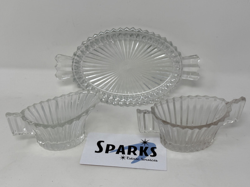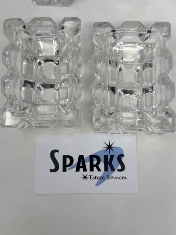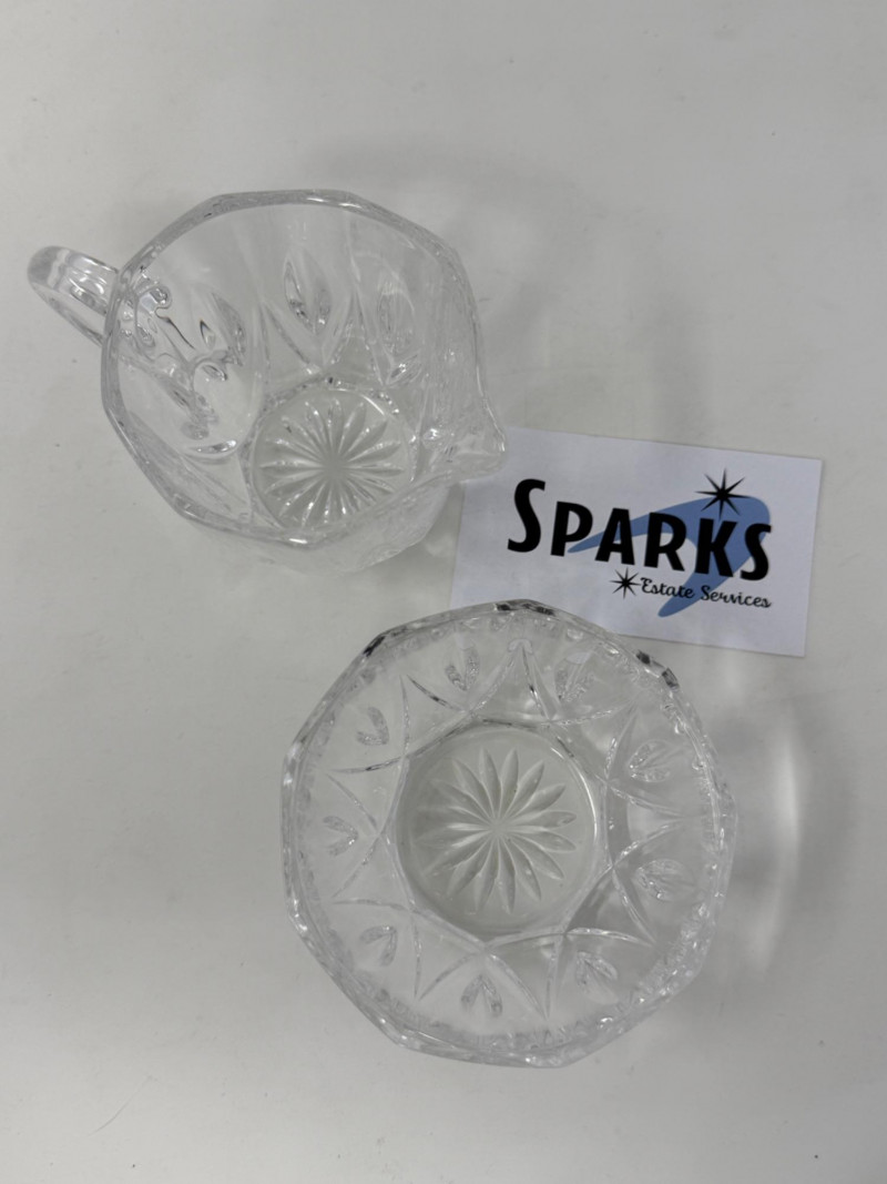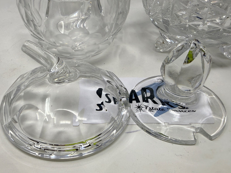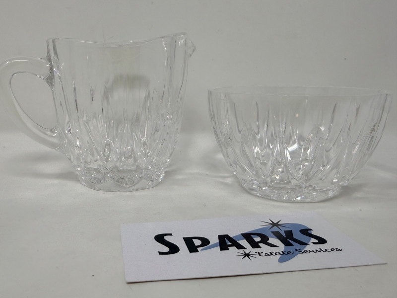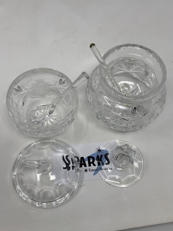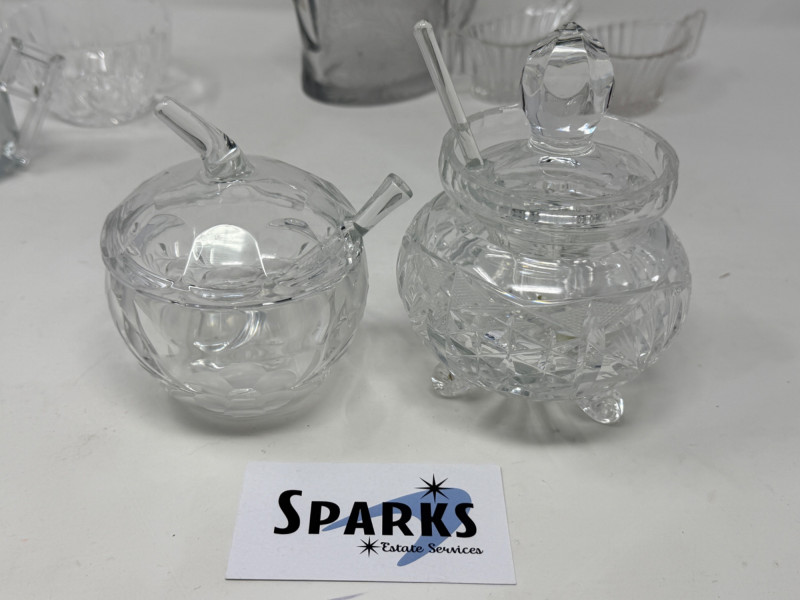 (17) Crystal Tableware - Jam Jars - Sugar/Cream - Ashtrays 3 Sugar/Cream Sets 2 jam jars with spoons