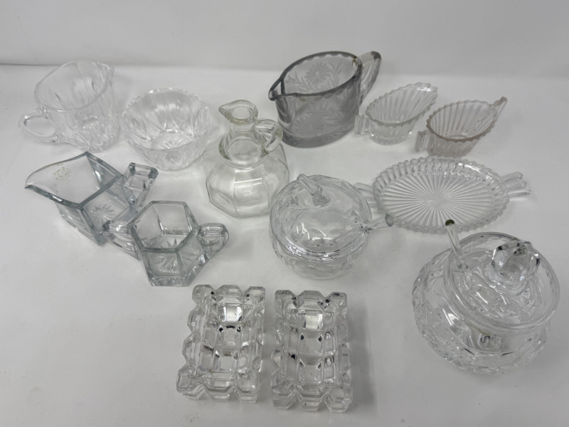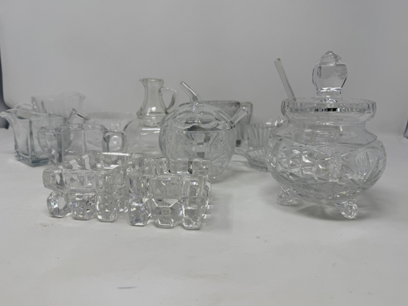 Lot # 252 - (17) Crystal Tableware - Jam Jars - Sugar/Cream - Ashtrays