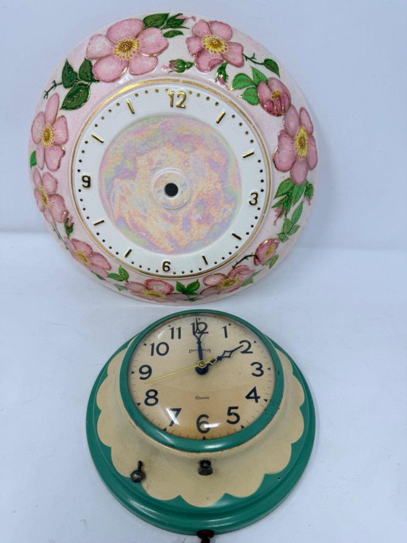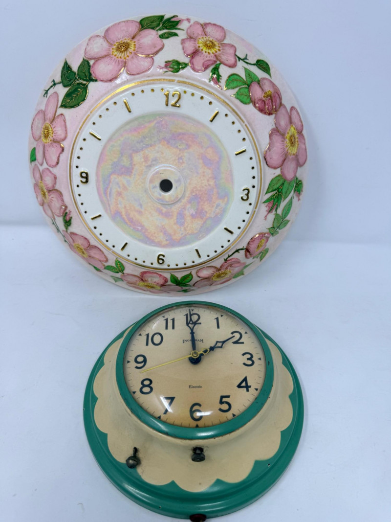 Lot # 256 - Ingraham Wall Clock & Floral Ceramic Clock Body