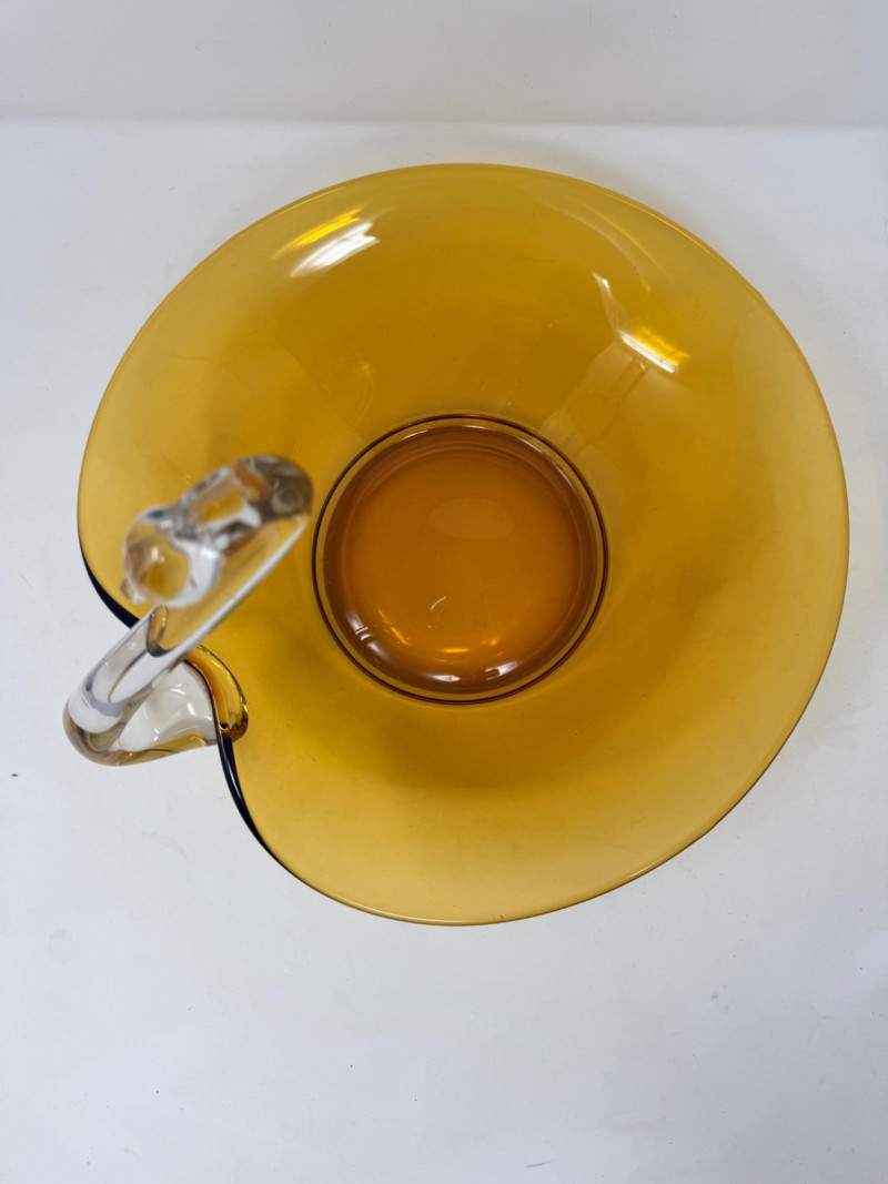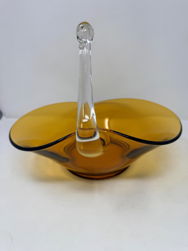 The use of hand-blown glass techniques allowed for unique shapes and a distinctive artisanal quality. 11.5”x12”x9.5”