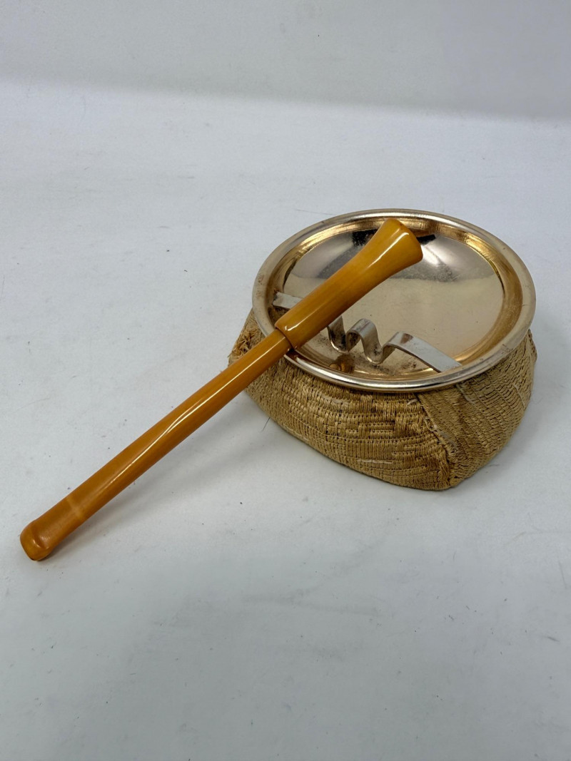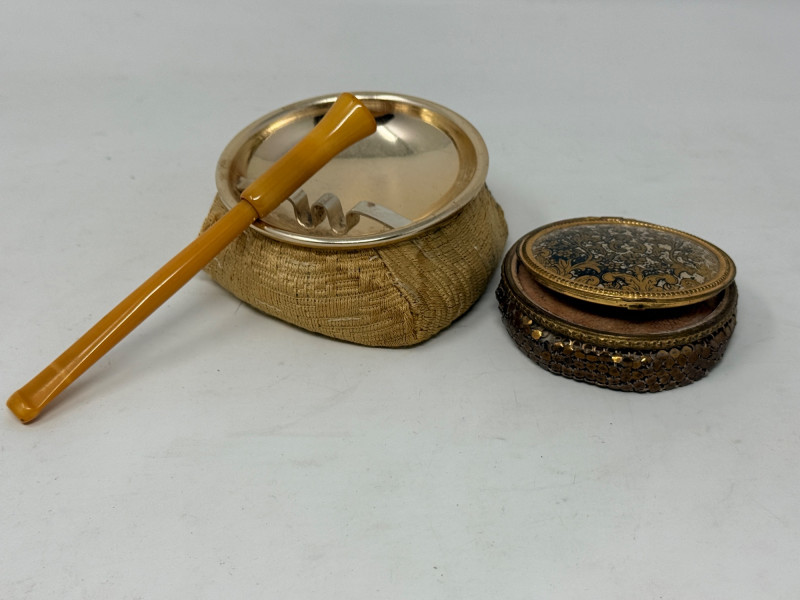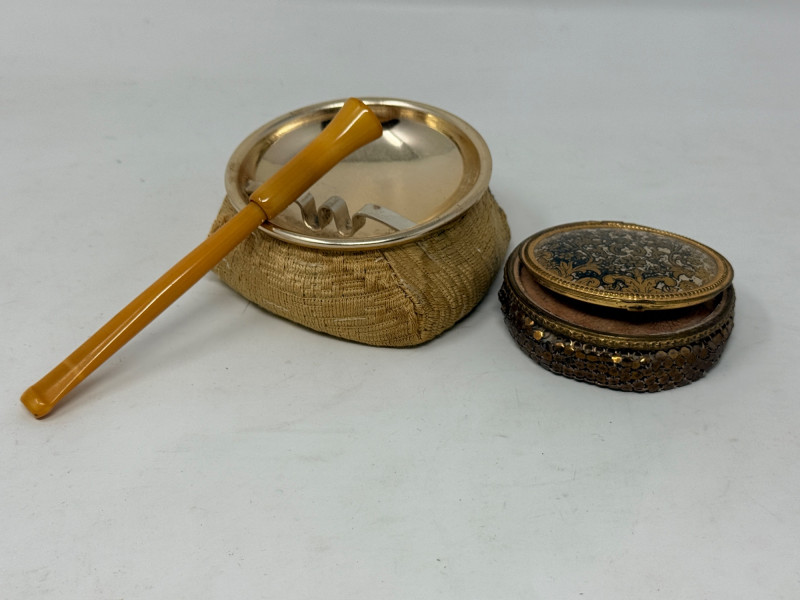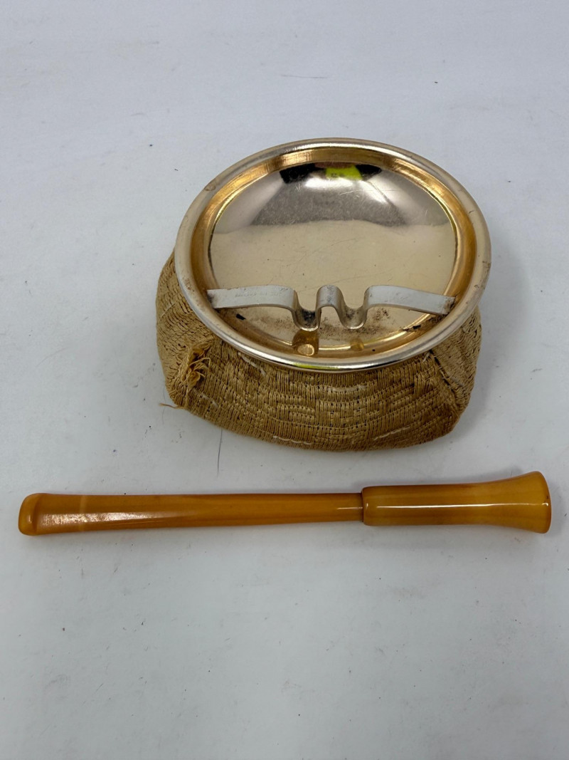 Lot # 266 - Satin Bean Bag Ashtray - Bakelite Cigarette Holder & Compact