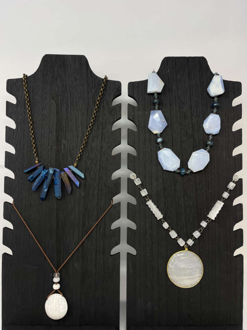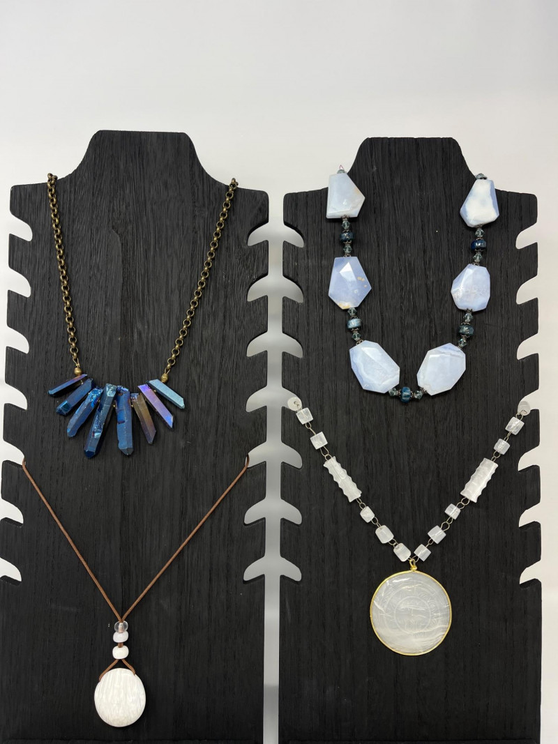 Sterling Silver Beaded stone Necklace & (3) Statement Necklaces Sterling silver beaded necklace with very light purple stones. Three stone statement necklaces.