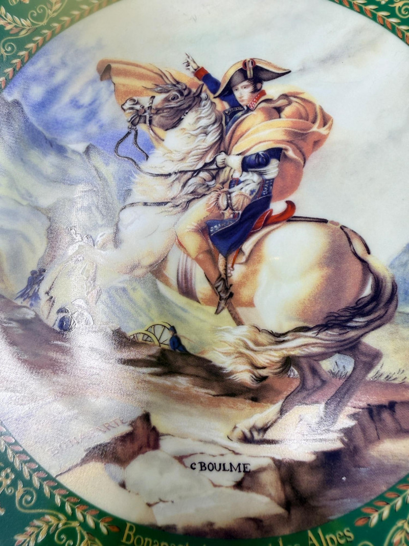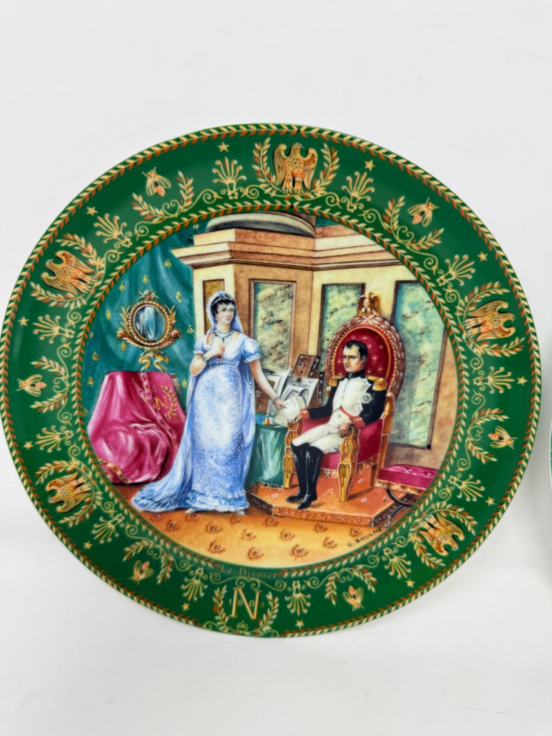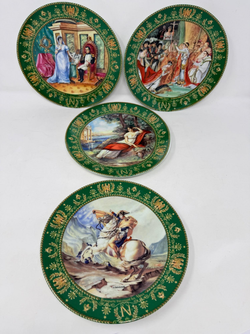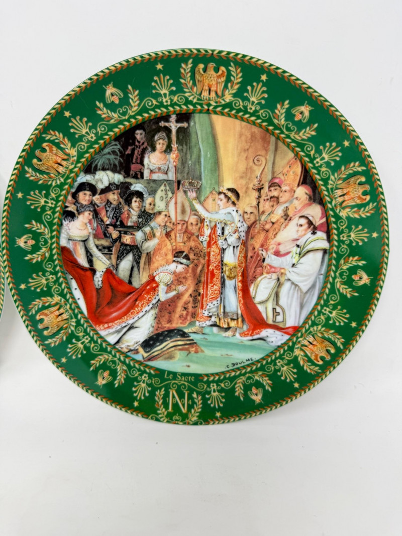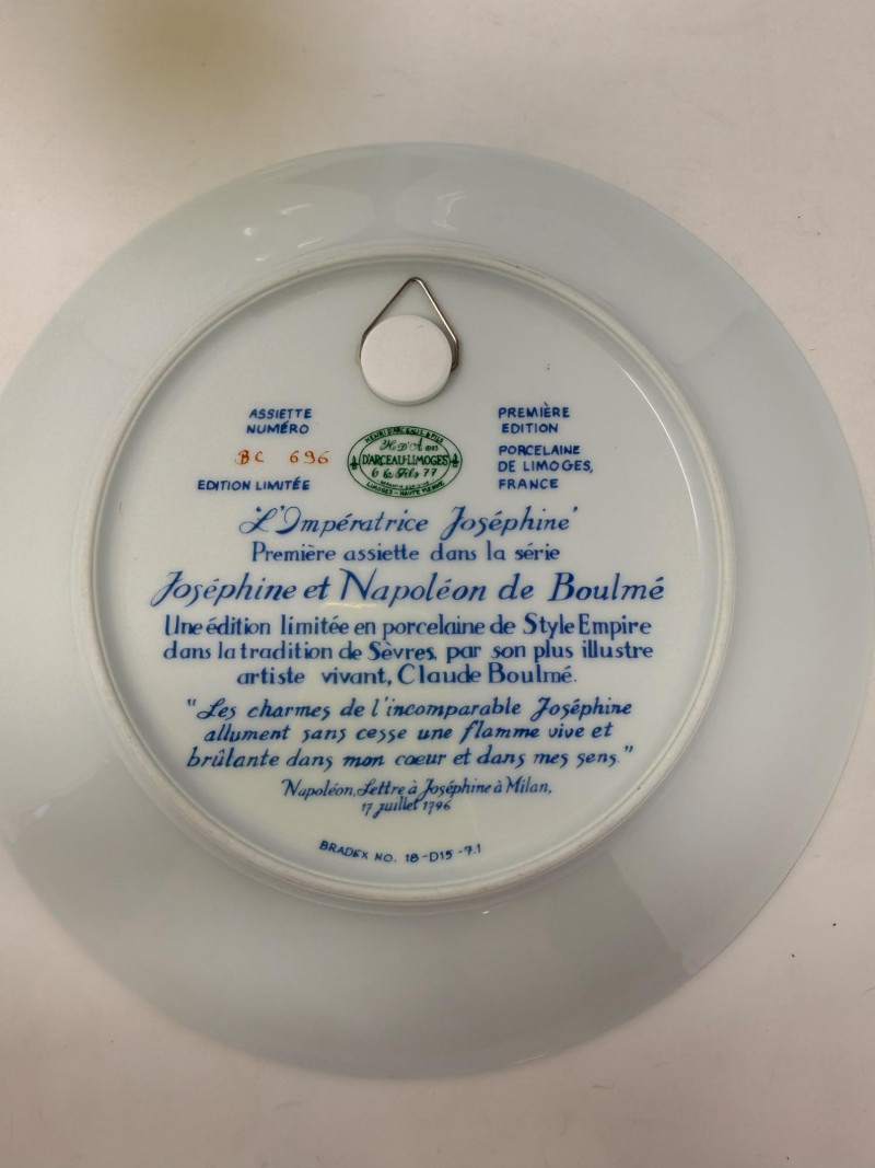 (4) Limited Edition Porcelain Limoges Plates by Claude Boulme. 8.5” Le Divorce #057 Sacre de Napoléon #460 L’Impératrice Joséphine #696 Bonaparte traversant les Alpes #815